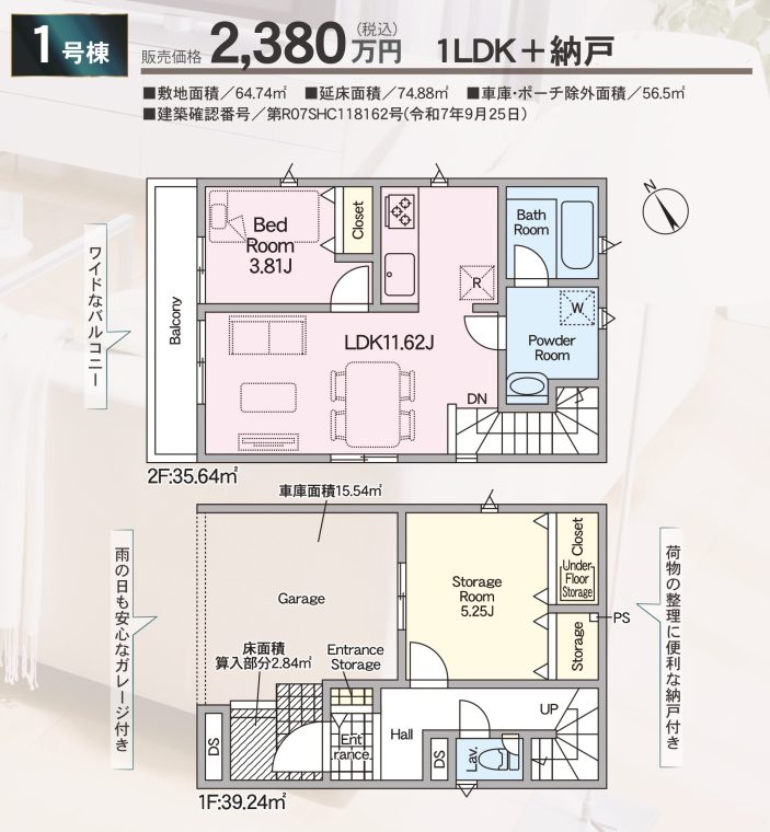 | 構造 | 木造スレート葺又はアスファルトシングル、ガルバリウム鋼板横葺2階建て |